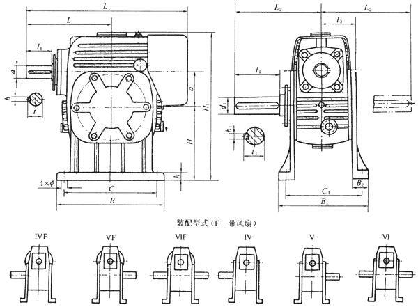 TPG80、TPG100、通用型減速機(jī)形式及外形尺寸(Ⅳ—Ⅵ)