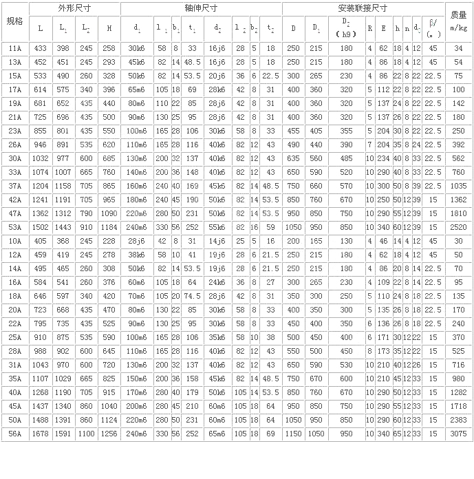 工作條件:輸入轉(zhuǎn)速28B型以下≤3000 r/min,40B型以下≤1800r/min,45B型以下≤1000r/min,Y型≤1500r/min;公稱轉(zhuǎn)矩2.107~588kN·m;傳遞功率0.25~2000kW;工作環(huán)境溫度為-40~45℃,低于0℃時(shí),啟動(dòng)前潤滑油應(yīng)預(yù)熱,高于45℃時(shí)應(yīng)采取降溫措施。