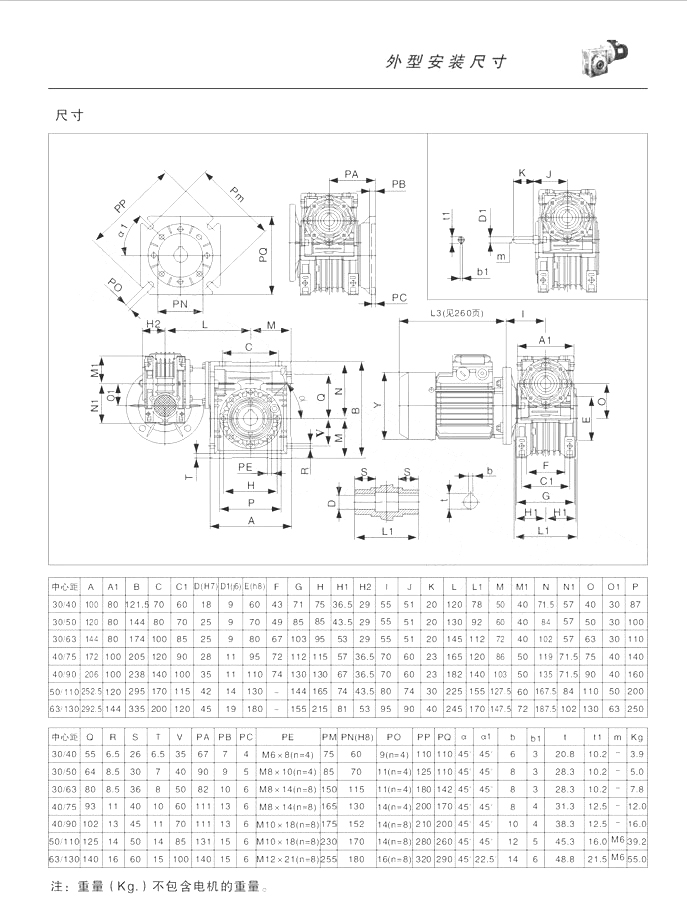 | RV系列鋁合金蝸輪蝸桿減速機(jī)-選型參數(shù)表 |