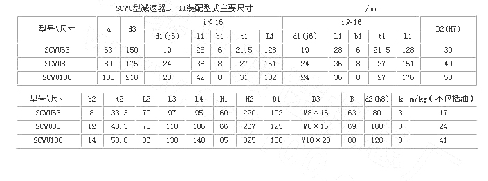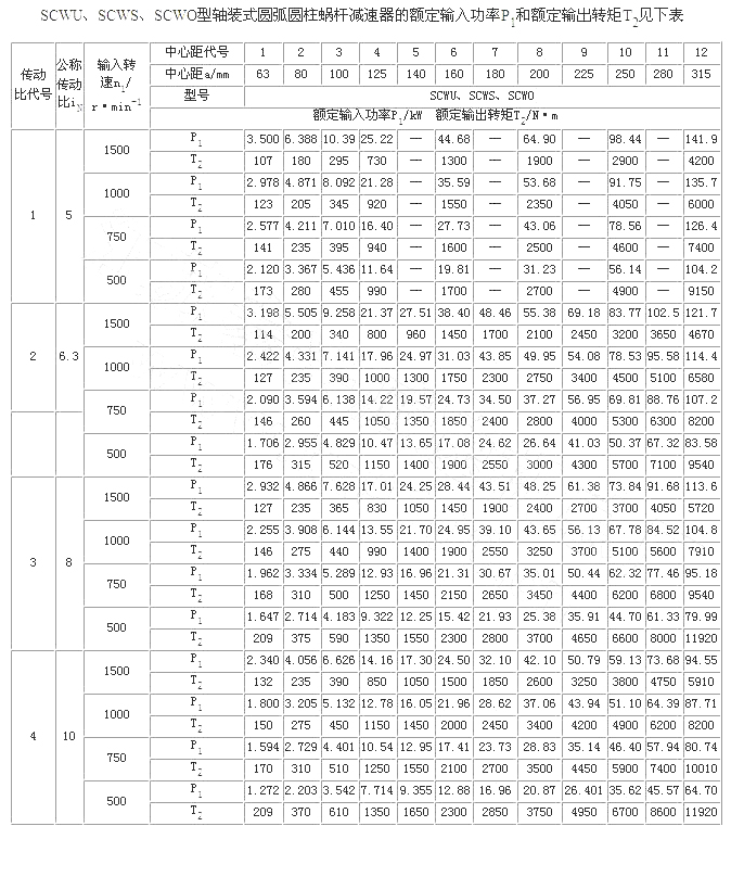 SCW 型軸裝式圓弧圓柱蝸桿減速器直接套裝在工作機(jī)主軸上,包括 SCWU ,SCWS,SCWO 三個(gè)系列。主要應(yīng)用于冶金、礦山、起重、運(yùn)輸、化工、建筑等機(jī)械設(shè)備的減速傳動(dòng)。
