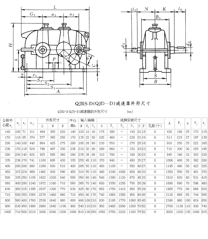 | QJRS-D中硬齒面減速機圖紙尺寸 |