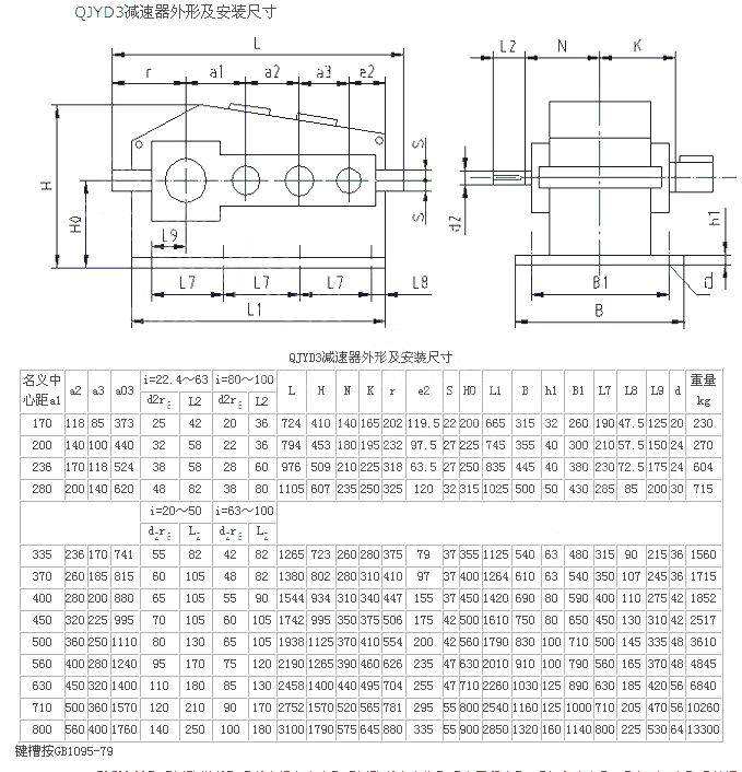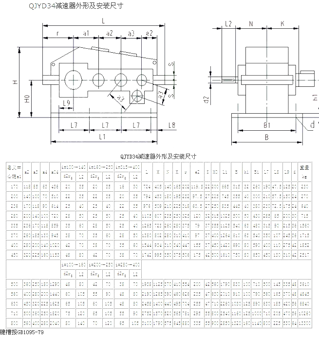 | QYD、QJYD起重用減速機外形及安裝尺寸 |