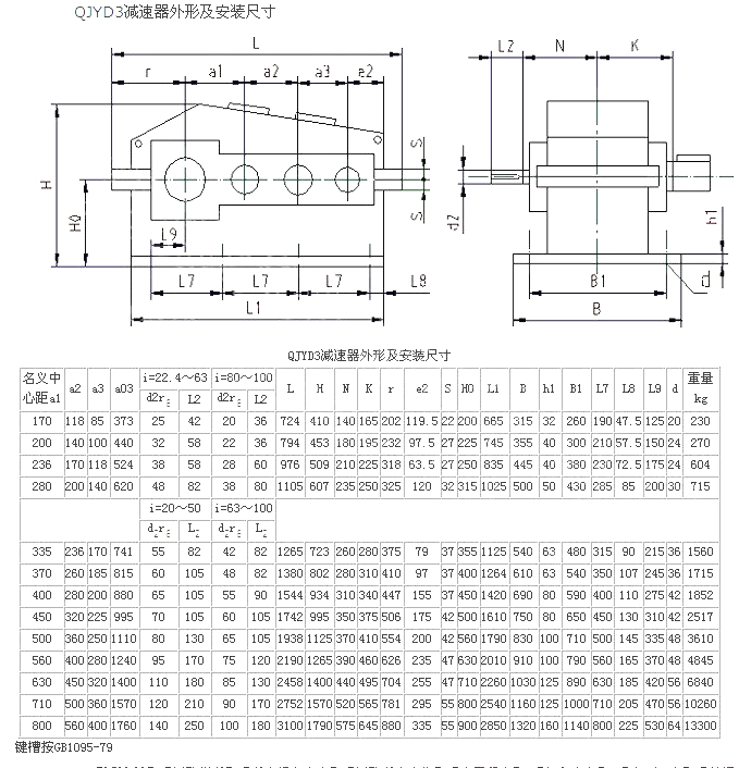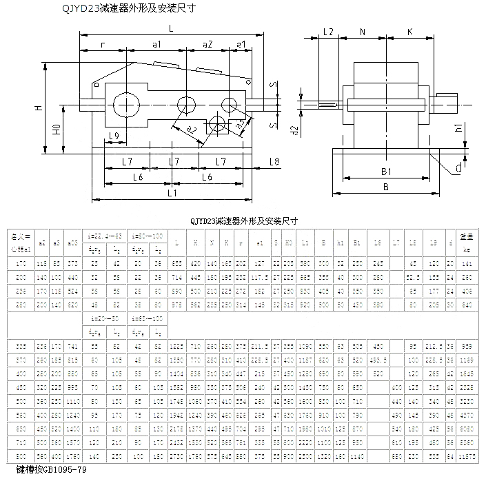 QYD、QJYD起重用減速機(jī)外形及安裝尺寸