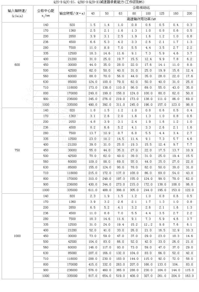 起重機(jī)底座式減速器是在三支點(diǎn)減速器的基礎(chǔ)上派生出來的。因此QJ-D型減速器的工作條件、主要技術(shù)參數(shù)、承載能力和輸出軸端最大允許徑向載荷與三支點(diǎn)減速器相同,其它有所不同。