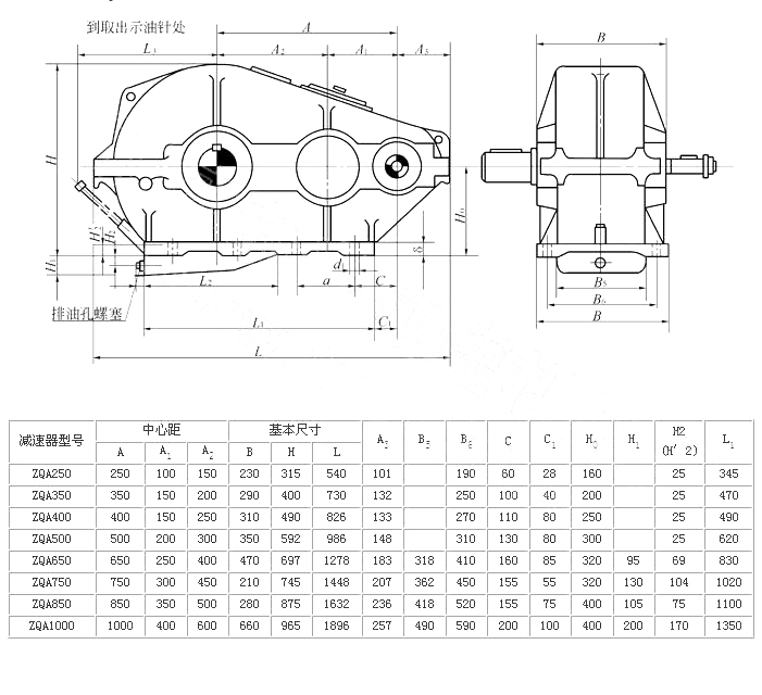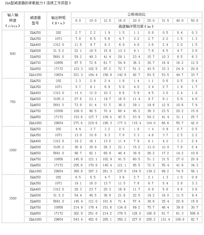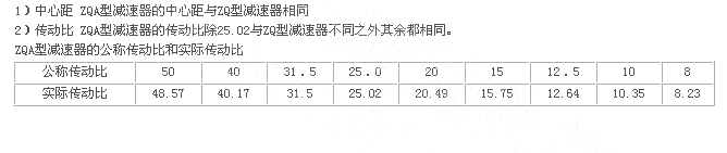 ZQA型減速器是在ZQ型減速器的基礎上改型設計的。為了提高齒輪的承載能力,又便于替代ZQ型,即安裝尺寸和外形尺寸、輸入和輸出軸伸不變的情況下,只改變齒輪的材質(zhì)和熱處理方式采用中硬齒面。并將ZQ型減速器的一級速比23.34改成25.02。