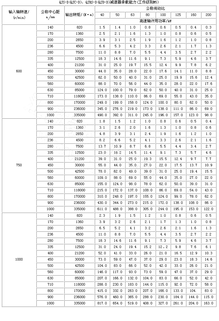 起重機底座式減速器是在三支點減速器的基礎(chǔ)上派生出來的。因此QJ-D型減速器的工作條件、主要技術(shù)參數(shù)、承載能力和輸出軸端最大允許徑向載荷與三支點減速器相同,其它有所不同。