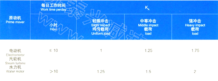 減速器的工況系數(shù)KA
