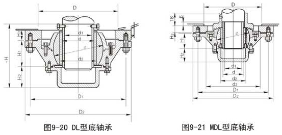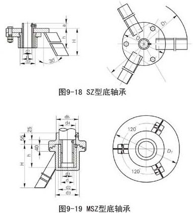 底軸承分三足式(SZ型)、底部法蘭式(DL型)、迷宮三足式(MSZ)型、迷宮底法蘭式(MDL)型四種,標(biāo)定型號如下: