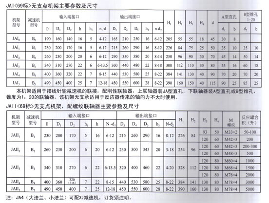 本機架適用于擺線針輪減速機的聯(lián)接,配剛性聯(lián)軸器,上聯(lián)軸器裝JA型直孔,下聯(lián)軸器裝A型直孔或B型錐孔,